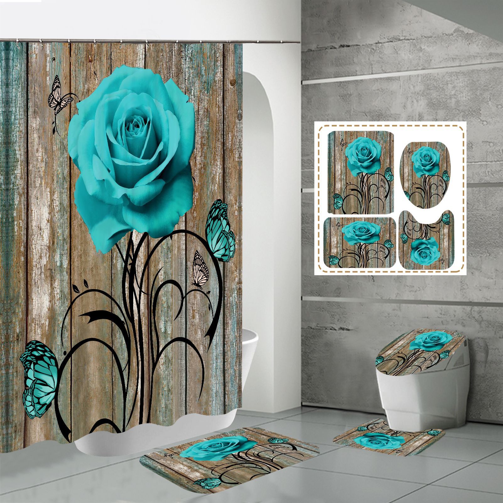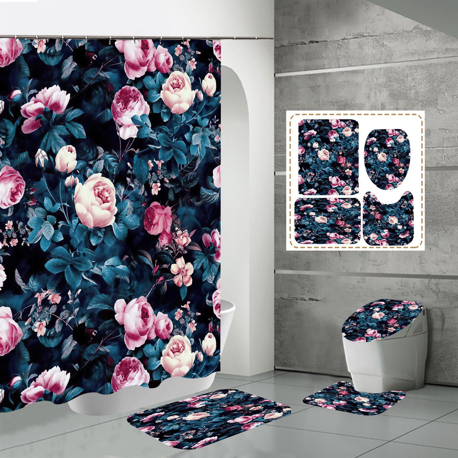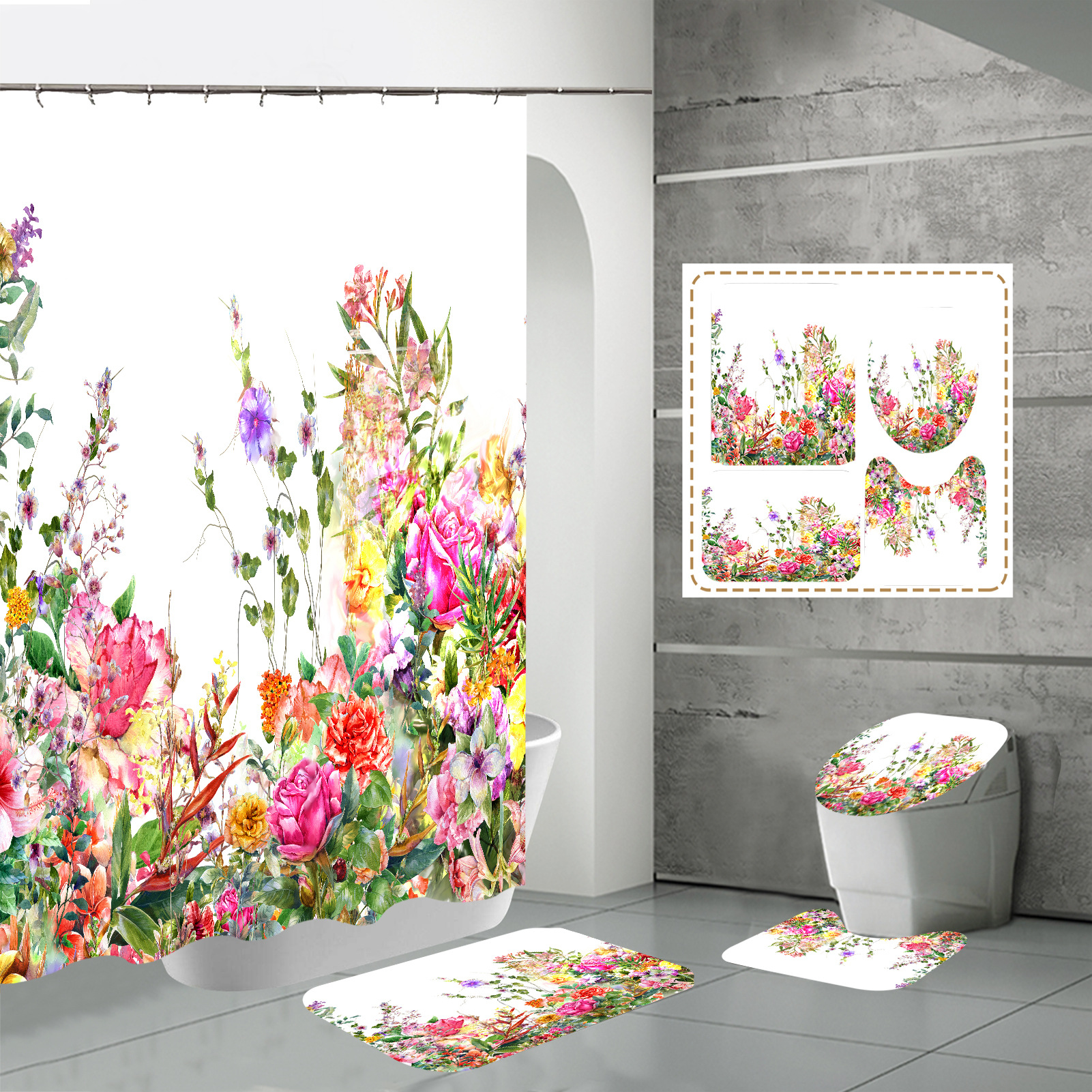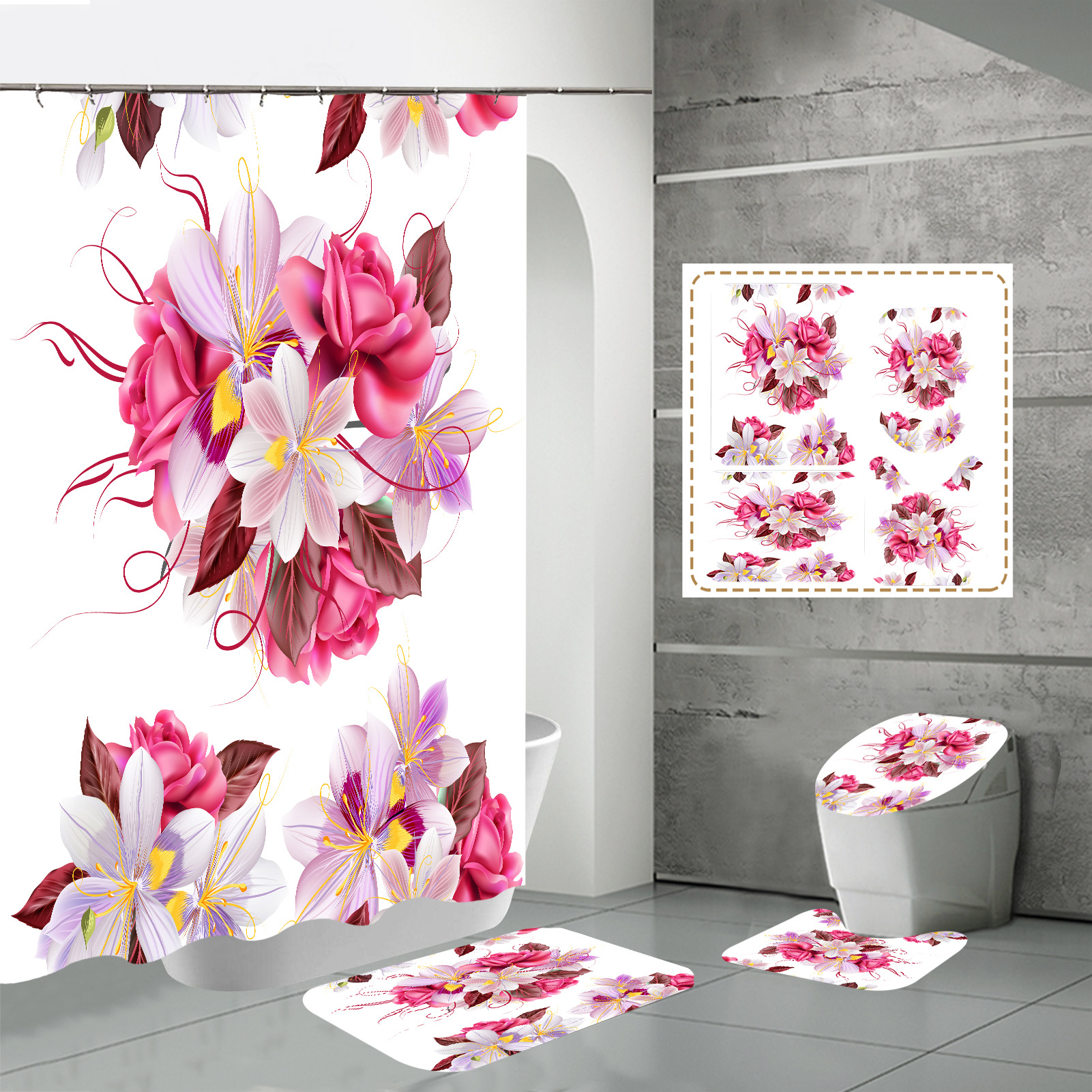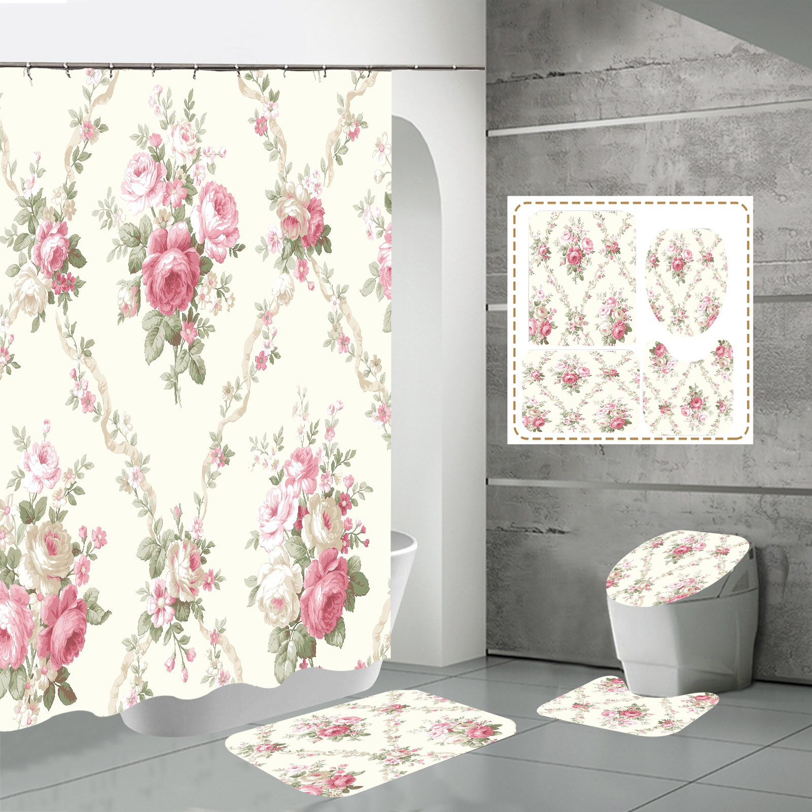 Shower curtain+floor mat+U-shaped mat+toilet seat*1set